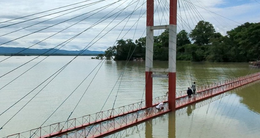 কাপ্তাই হ্রদের পানি বৃদ্ধির ফলে ডুবে গেছে রাঙ্গামাটির ঝুলন্ত সেতু। সেতুর পাটাতনের ওপর পানি উঠেছে প্রায় ৫ থেকে ৬ ইঞ্চি,