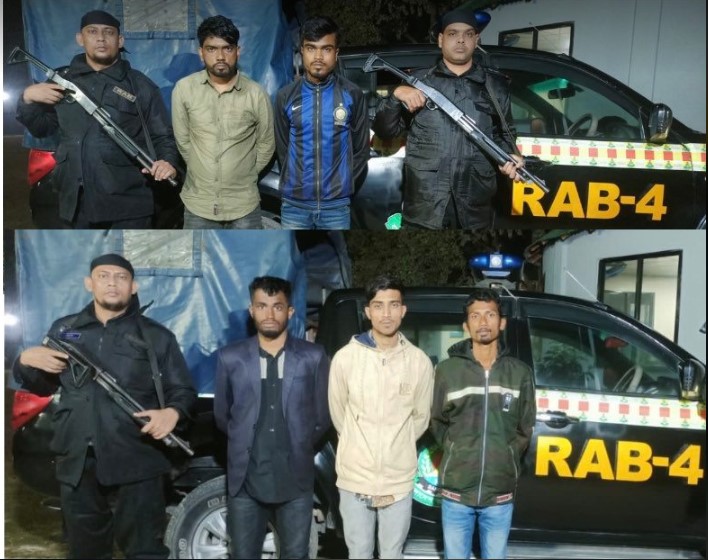 আসামী ছিনতাই চক্রের মূলহোতাসহ ৫ জনকে আটক করছে র্যাব-৪