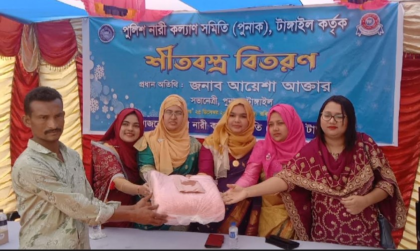কালিহাতীতে শীত বস্ত্র বিতরণে পুলিশ নারী কল্যাণ সমিতি