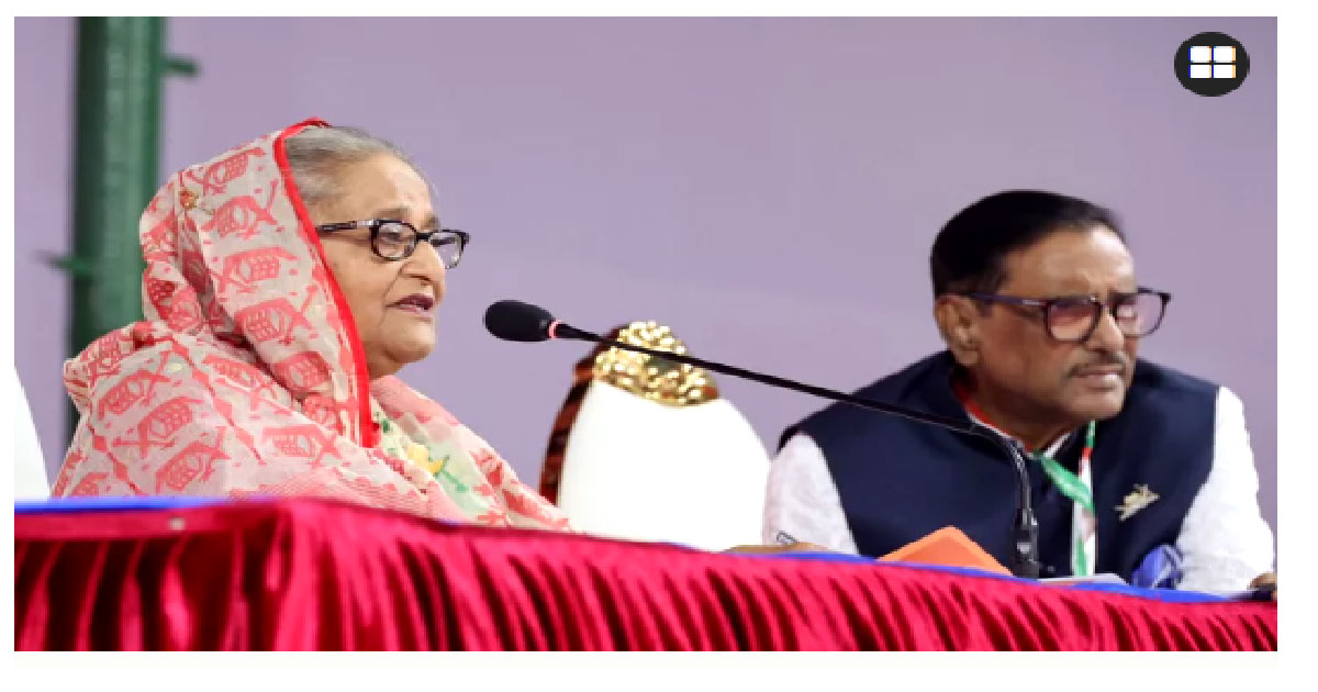 আওয়ামী লীগের সম্মেলনস্থলে শেখ হাসিনা