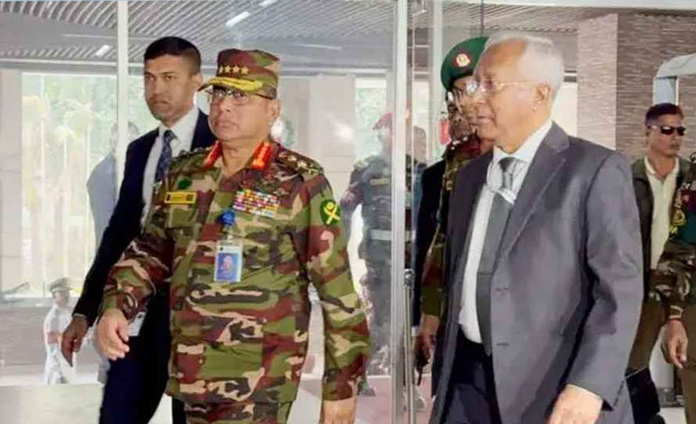 আসন্ন ত্রয়োদশ জাতীয় সংসদ নির্বাচন ও গণভোটকে সামনে রেখে দেশের সার্বিক আইনশৃঙ্খলা পরিস্থিতি পর্যালোচনায় সেনা, নৌ ও বিমানবাহিনী প্রধানের সঙ্গে