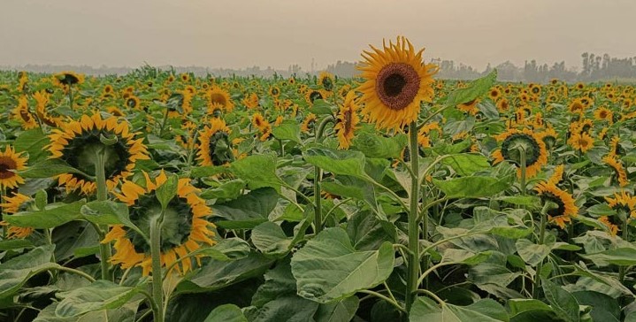 এ যেন সূর্যমুখী ফুলের রাজ্য। যতদূর চোখ যায়; হলুদ রঙের ঝলকানি দেখা যায়। বিস্তীর্ণ মাঠজুড়ে সবুজের মাঝে হলুদের সমাহার। সূর্যমুখী