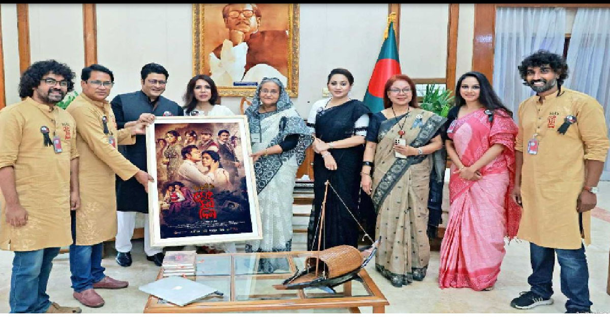 প্রধানমন্ত্রীর হাতে হৃদির মুক্তিযুদ্ধের গল্পের সিনেমার পোস্টার